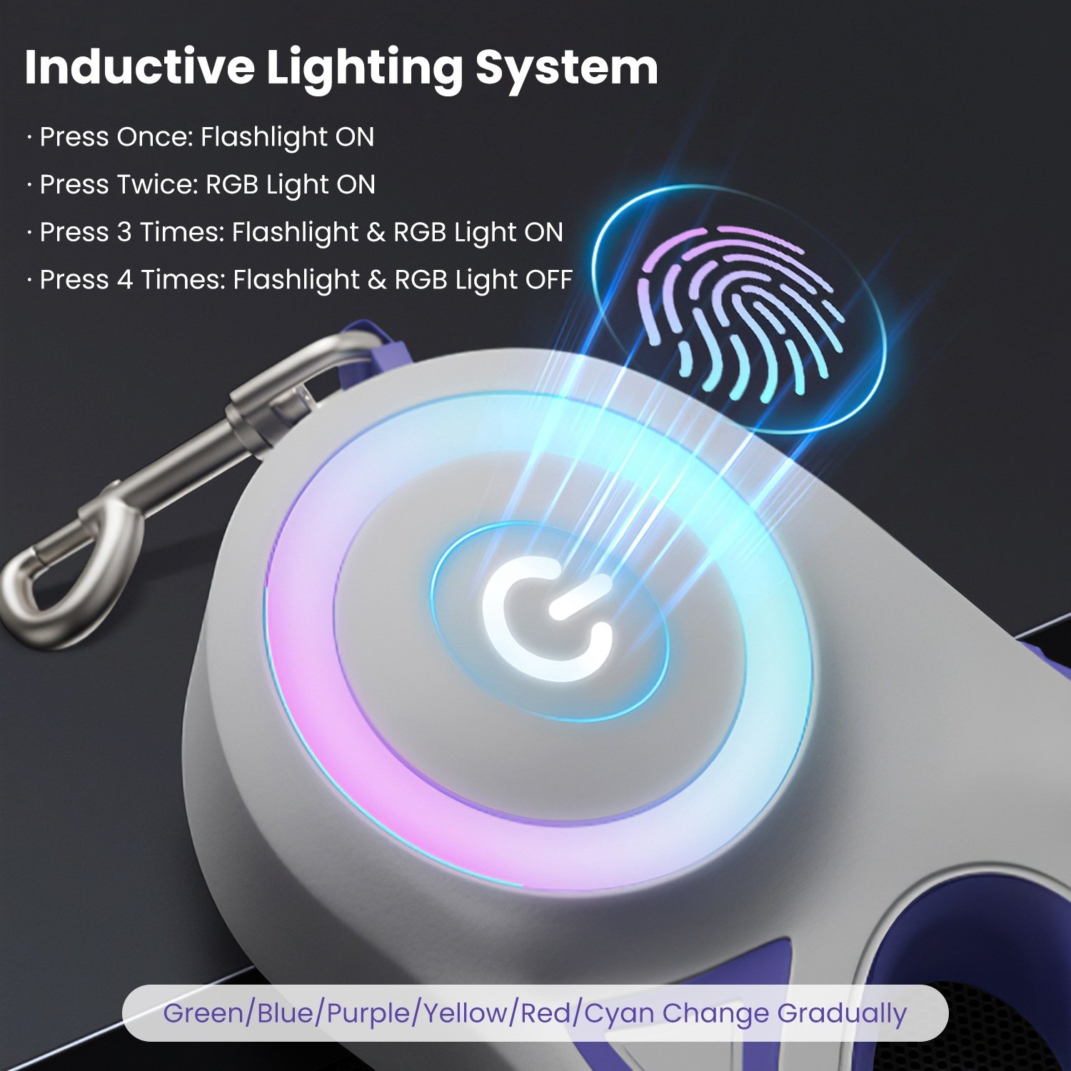 Home > 16FT Retractable Dog Leash Extendable Pet Leash Dog Walking Leash with Flashlight RGB Light 2 Rolls of Waste Bags Dispenser Fit for 66-110lbs
