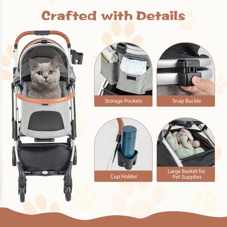 1.3-in-1 Design Meets More Needs: The pet carrier part is removable, thus it can serve as a car seat. With built-in handle, it is also a portable pet carrier! When working as a stroller, the 2-level adjustable handle allows you to walking with your pets at a desired height. Thus, it is a perfect choice to take pets to trip!