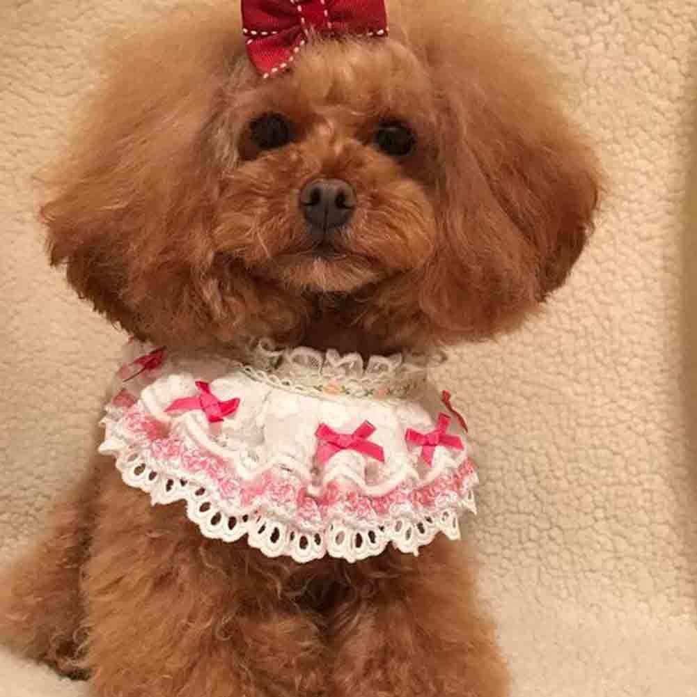 Handmade Pink Bowknot Retro Lace Collars Dog Necklace Cat Neckerchief 8.2-11.2"