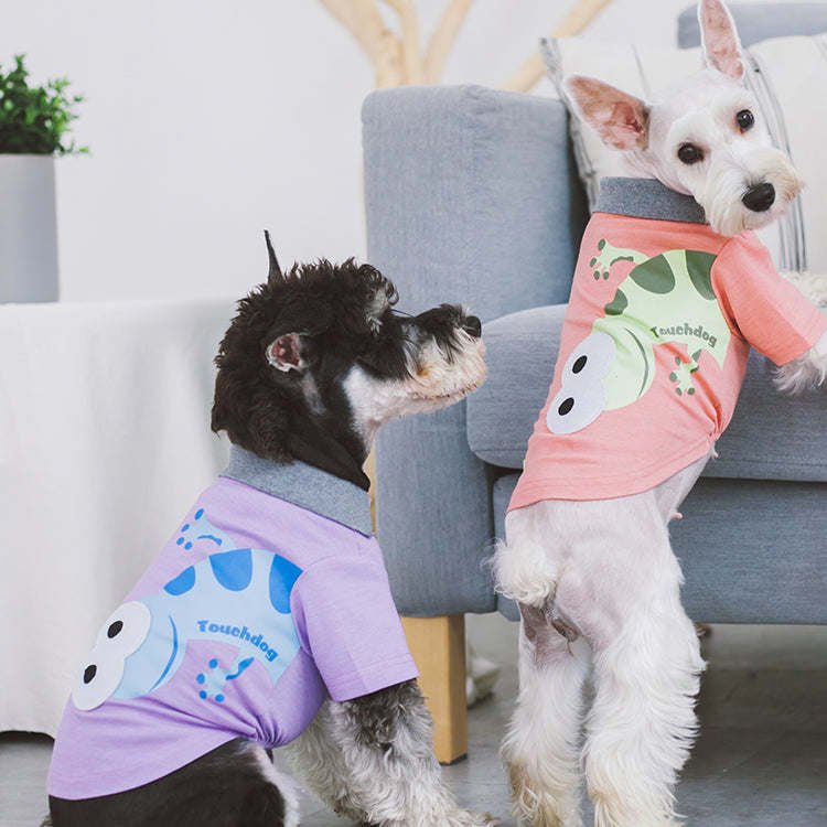 The Touchdog 'Arubark' Caribbean Style Dog Polo T-Shirt is inspired by the fun and tropical carribean lifestyle. Features a creative and magnificent Lizard or Gecko-like print along the backside with a fun and creative embroidered patch by the printed eye graphics. Completed with a nice and clean pleated collar along the backside. Composed of a one-piece fabric that is breathable with slight elastic stitching by the belly area for a tailored fit. Available in Multiple Sizes and Colors.